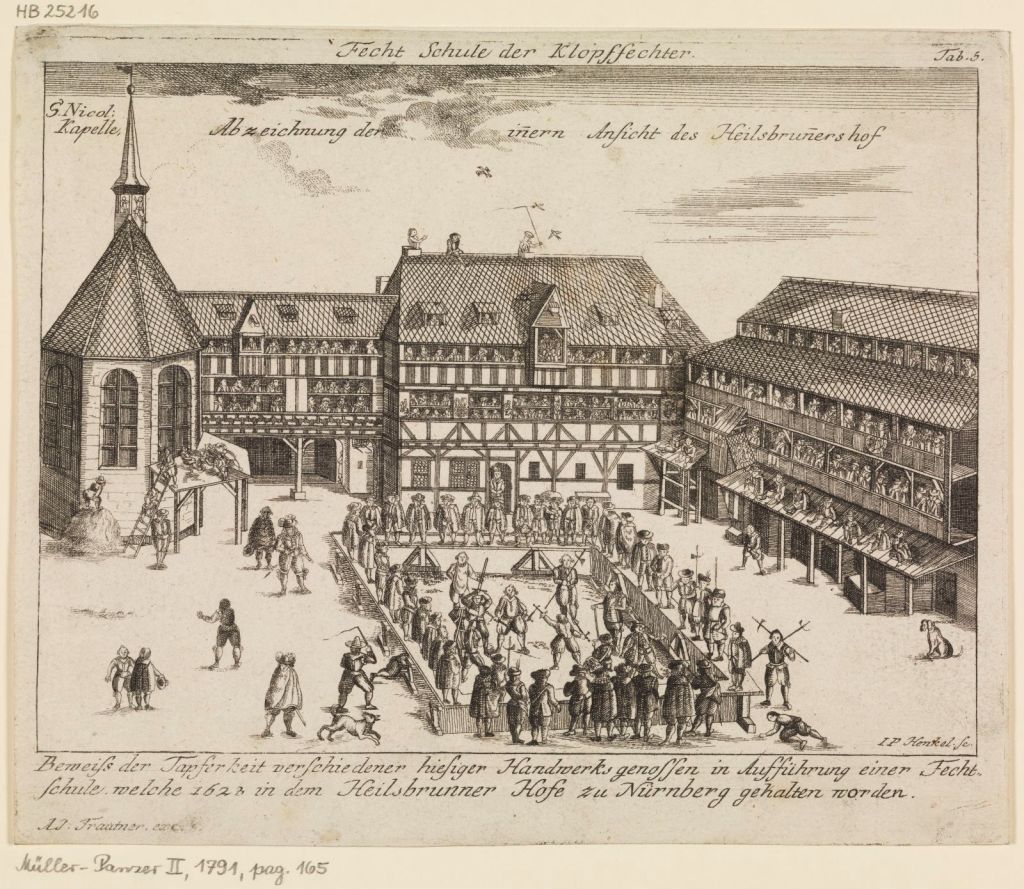 - “Sind gewisse Handwercks-Pursche, die für Geld ihre Schulen halten, und sich auf allerhand Gewehren mit einander herum balgen. Sie werden in Feder-Fechter und Marx-Brüder, oder Meister des langen Schwertes von St. Marco und der Löwenburg abgetheilet, und wenn einer unter ihnen wider beyde Partheyen zu fechten eine Schule anschläget, so wird er ein Lux-Bruder geheissen. Sie haben ihre Collegia und Schulen in den vornehmsten deutschen Städten, allwo sie unter sich Meister und approbirte Meister zu schlagen pflegen.” Trichter (1742).
